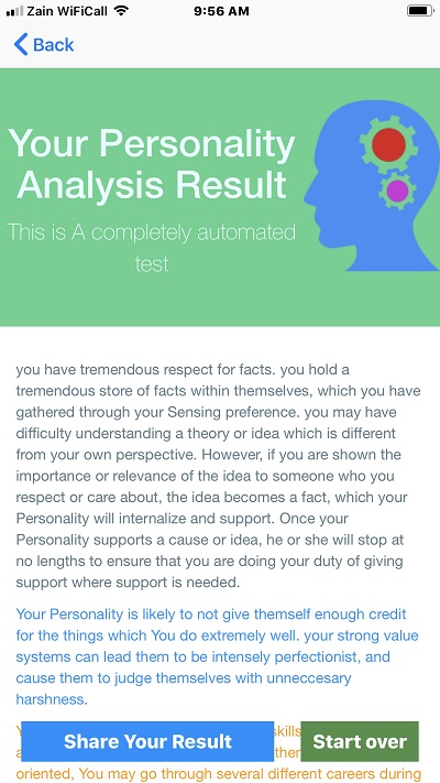 Personality analyzer will use your way of writing and your behavior to analyze your personality the test is fully automated and make use of AI classification technology allows for machine learning of positive and negative data. This is commonly applied in classifying things the analyzer may or may not give accurate results based on your behavior during the test try to be normal and take your action the usual way you always doing